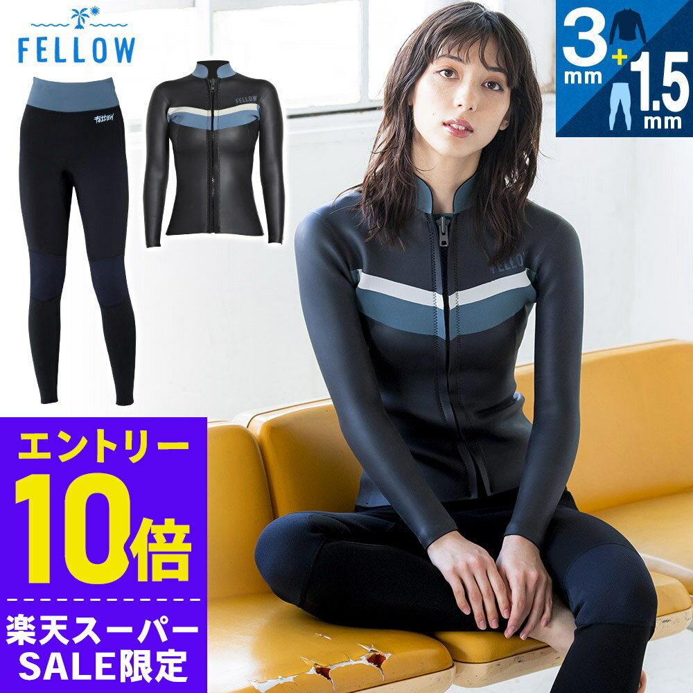 [店内全品ポイント5倍]FELLOW ウェットスーツ タッパー&ロングジョン セット レディース ジャケット3mm ロングジョン3mm スキン ラバー クラシック 2ピース サーフィン SUP マリンスポーツ 日本規格 上下セット セットアップ