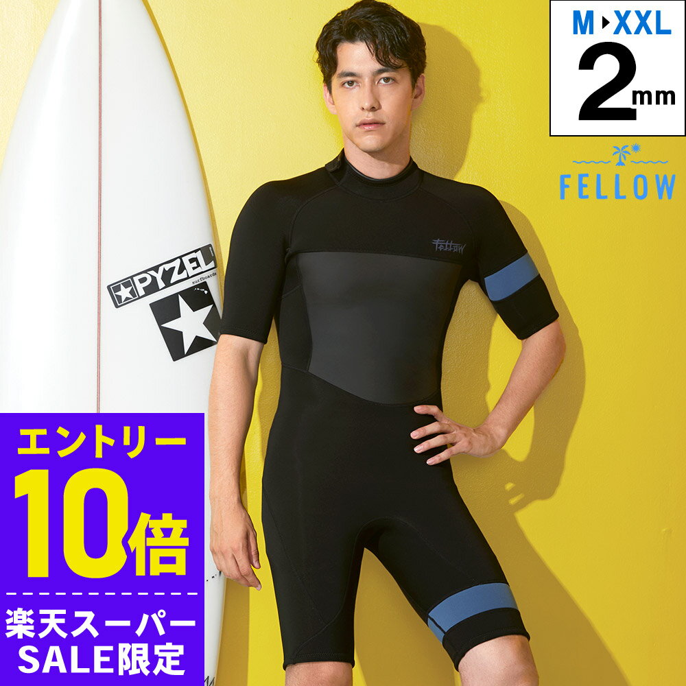 [開始4時間限定クーポン]FELLOW ウェットスーツ スプリング 2mm メンズ 半袖 バックジップ ジャージ ウエットスーツ サーフィン SUP ボディボード ダイビング シュノーケリング 22F-SP11