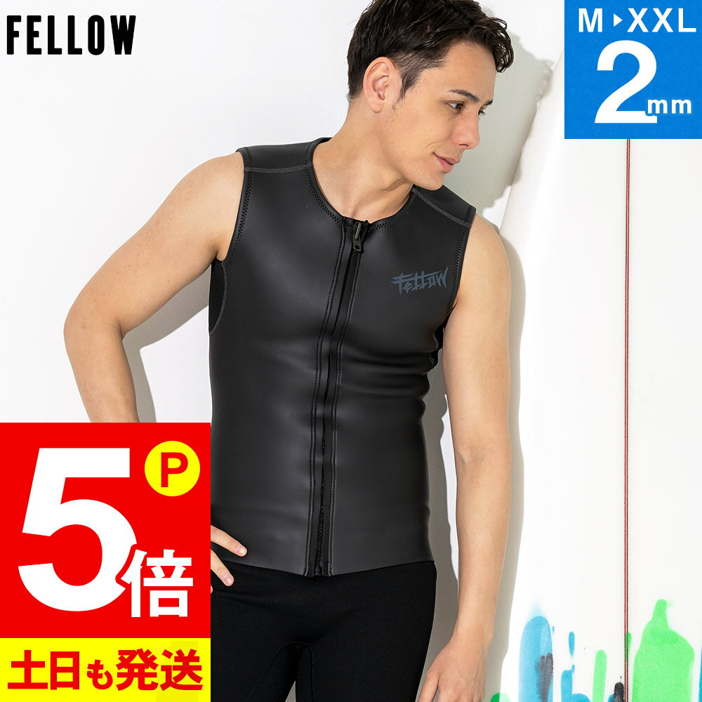 [店内全品ポイント5倍]FELLOW ウェットスーツ スキンベスト 2mm メンズ ラバー クラシック ノースリーブ フロントジップ ウエットスーツ サーフィン SUP ダイビング シュノーケリング 20F-VS11