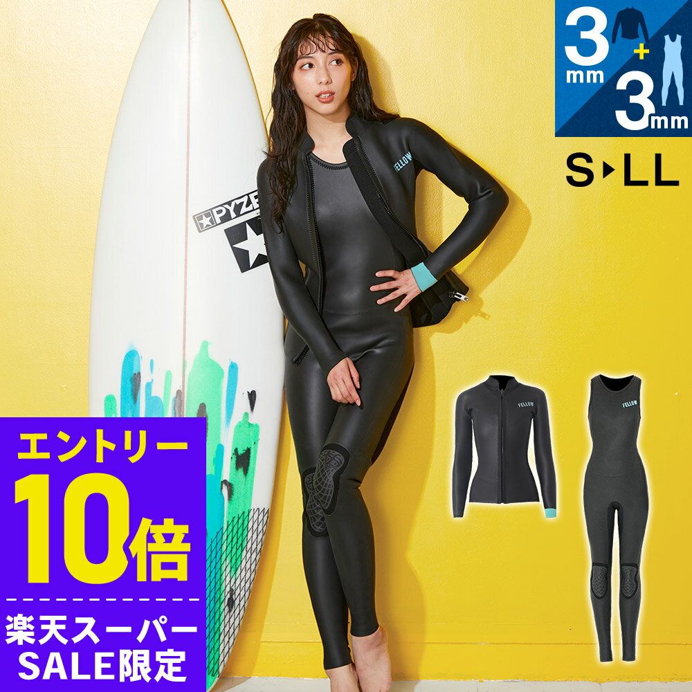 [開始4時間限定クーポン]【特価】ウェットスーツ ロングジョン&タッパー セット FELLOW 3mm レディース サーフィン スキン ラバー フルスーツ ジャケット セットアップ ウエットスーツ 2ピース 日本規格 大きいサイズ 20F-JT21