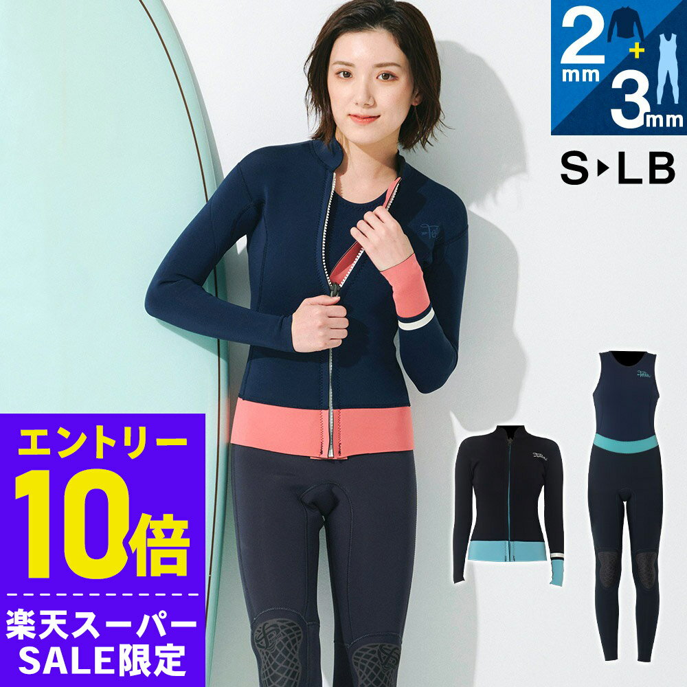 [開始4時間限定クーポン]ウェットスーツ レディース ロングジョン&タッパー セット FELLOW サーフィン ジャージ フルスーツ ジャケット セットアップ ウエットスーツ 2ピース SUP ダイビング マリン ヨット 日本規格 大きいサイズ 20F-JT22