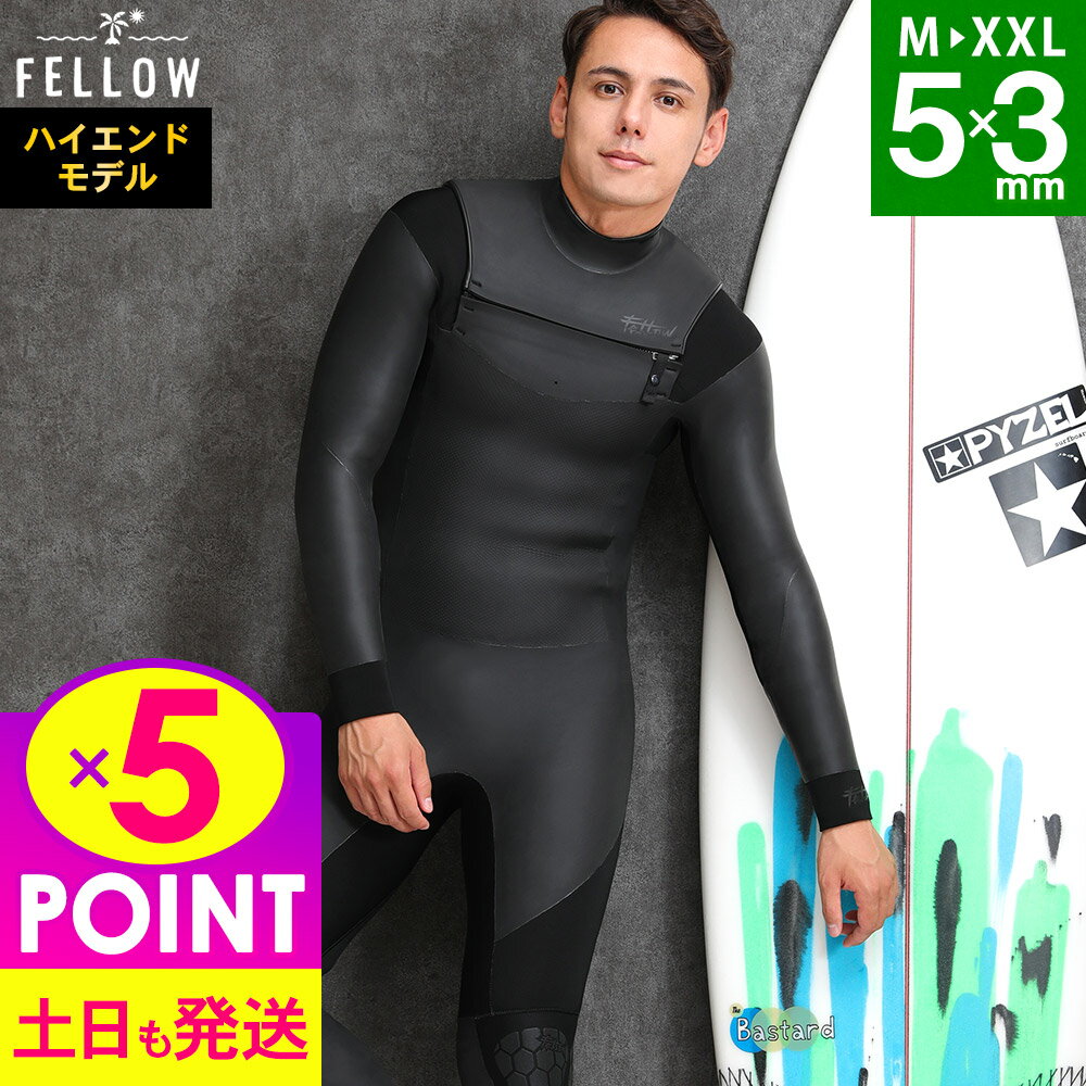 [店内全品ポイント5倍]FELLOW セミドライ ウェットスーツ メンズ 5×3mm チェストジップ スキン セミドライスーツ ウエットスーツ ラバー SEMIDRY サーフィン ダイビング 冬用 最高の保温性 超撥水 裏起毛 ストレッチ 日本規格