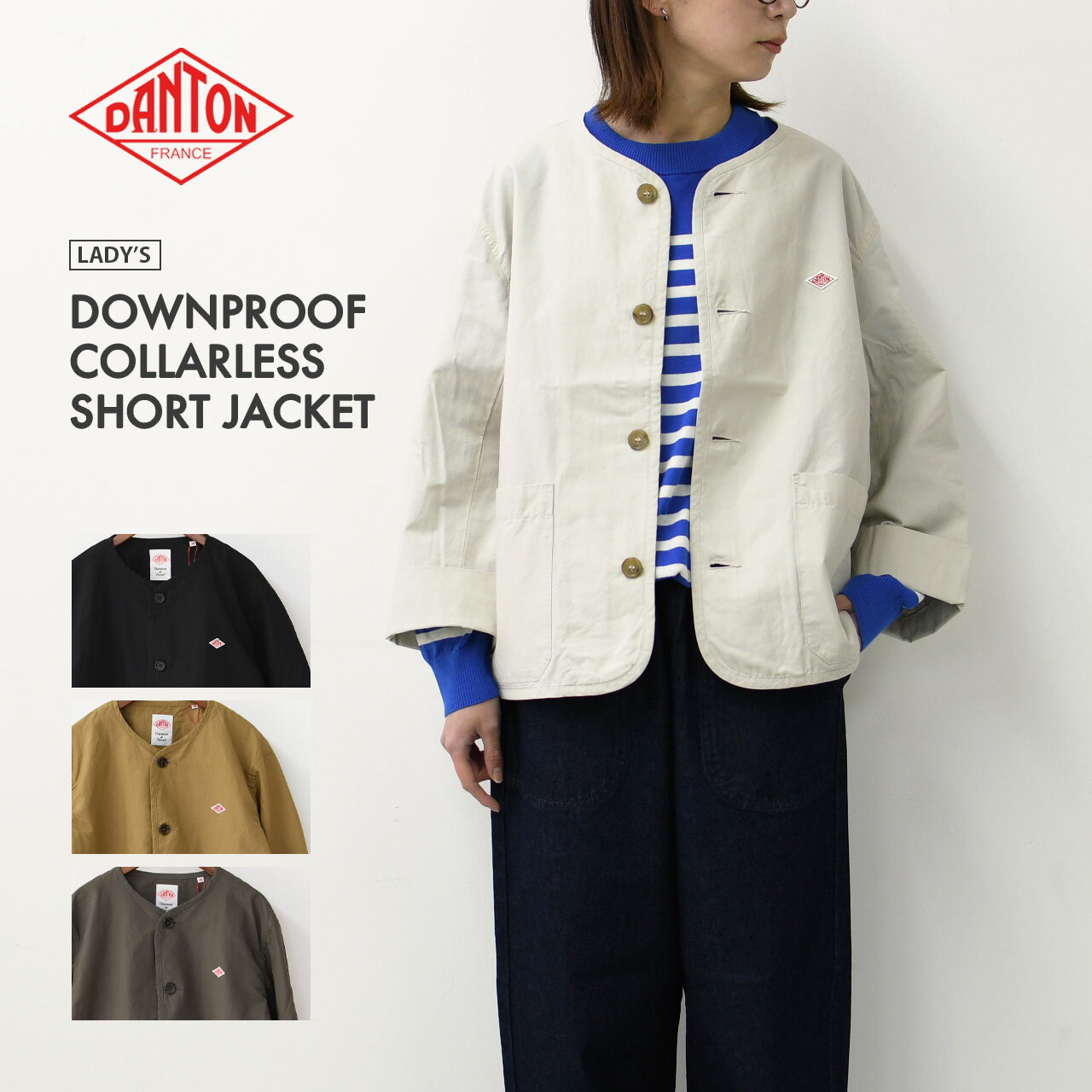 【SALE 30%OFF】DANTON [ダントン] W DOWNPROOF COLLARLESS SHORT JACKET [DT-A0473CFD] CFウェザーカラーレスショートジャケット・カラーレスジャケット・ゆったりシルエット・軽量・LADY'S [2025SS]