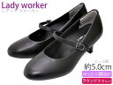 Lady worker レディワーカー レディースパンプス 疲れにくい 甲ストラップ 幅広 3E 5cmヒール 合成皮革 ラウンドトゥ フォーマル ビジネスシューズ 革靴 仕事履き 通勤 就活 フォーマル 消臭 静音 軽量 ブラック LO-17070