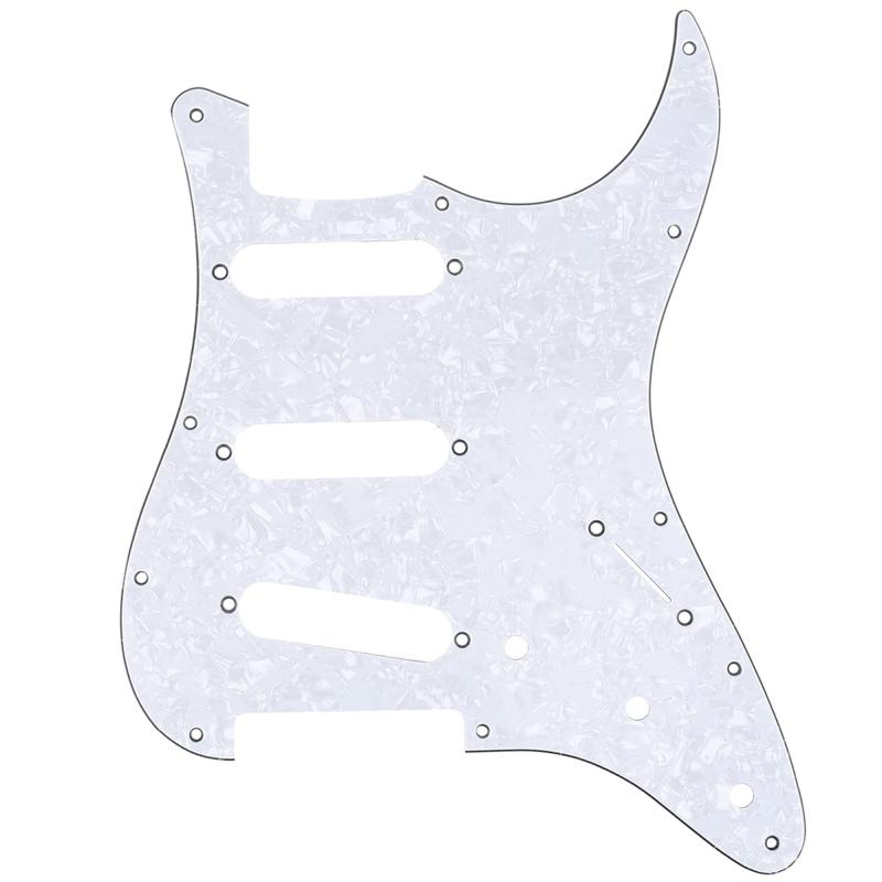 Musiclily Pro 72年式11穴 ストラトキャスター用ピックガード日本製Fender Japan Stratエレキギター用、ホワイトパール4P日本製 Fender Japan 64または復刻版,Japan 72 Stratストラトスタイルなエレキギターに適合.他のStratギターに取り付ける場合は,このピックガードを加工する必要があります11穴,SSSのピックアップ配列(シングルコイル/シングルコイル/シングルコイル)材質:プラスチック,厚さ:2.0-2.2mm表面に二重の保護フィルム採用,裏側に純アルミ箔シールドパッケージ内容:1枚のSTギターピックガード,取り付けネジ付属