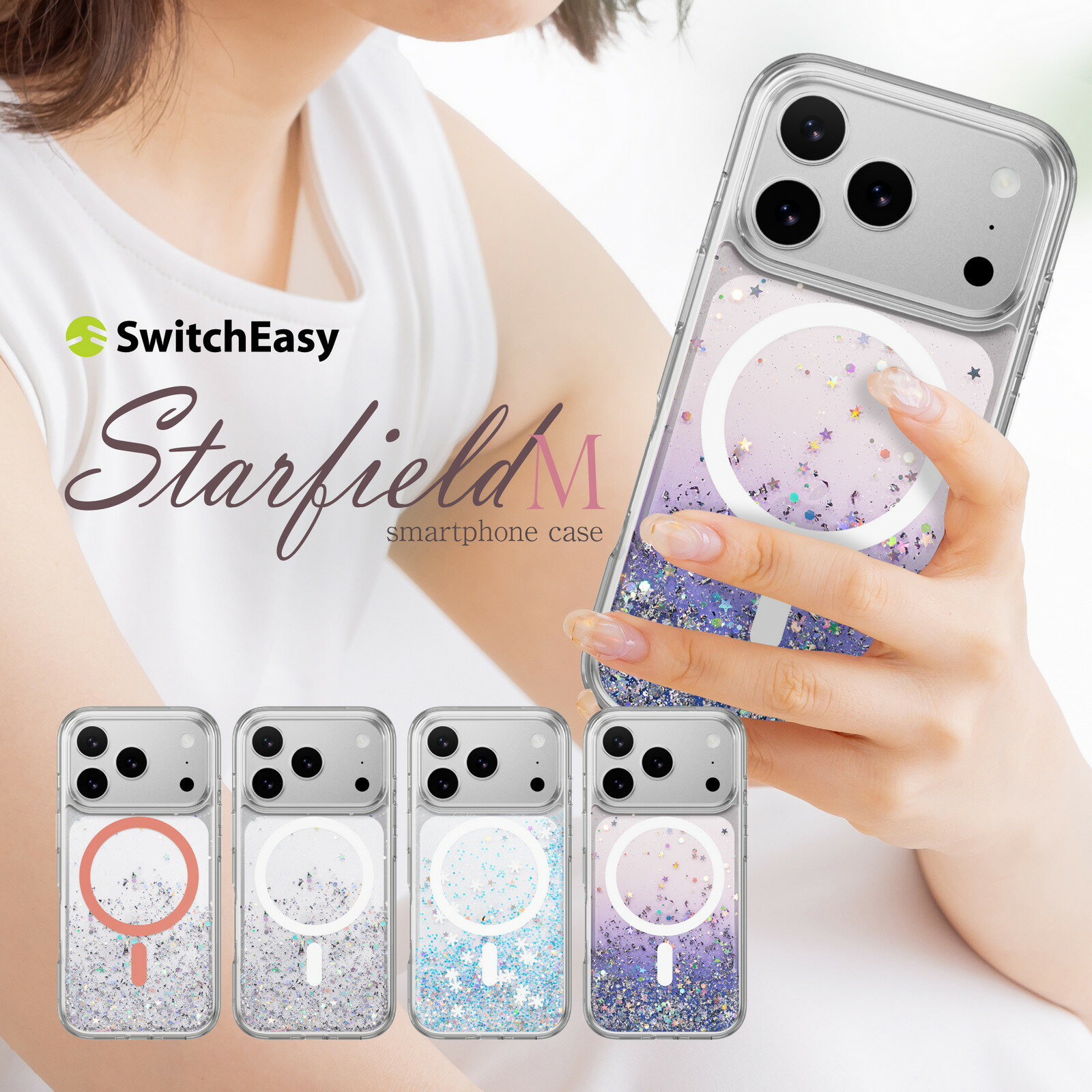 iPhone 17 Pro ケース クリア MagSafe 対応 おしゃれ キラキラ 可愛い 耐衝撃 スマホケース ラメ かわいい マグセーフ対応 携帯ケース [ iPhone17Pro アイフォン17Pro 対応 case ] SwitchEasy StarField M