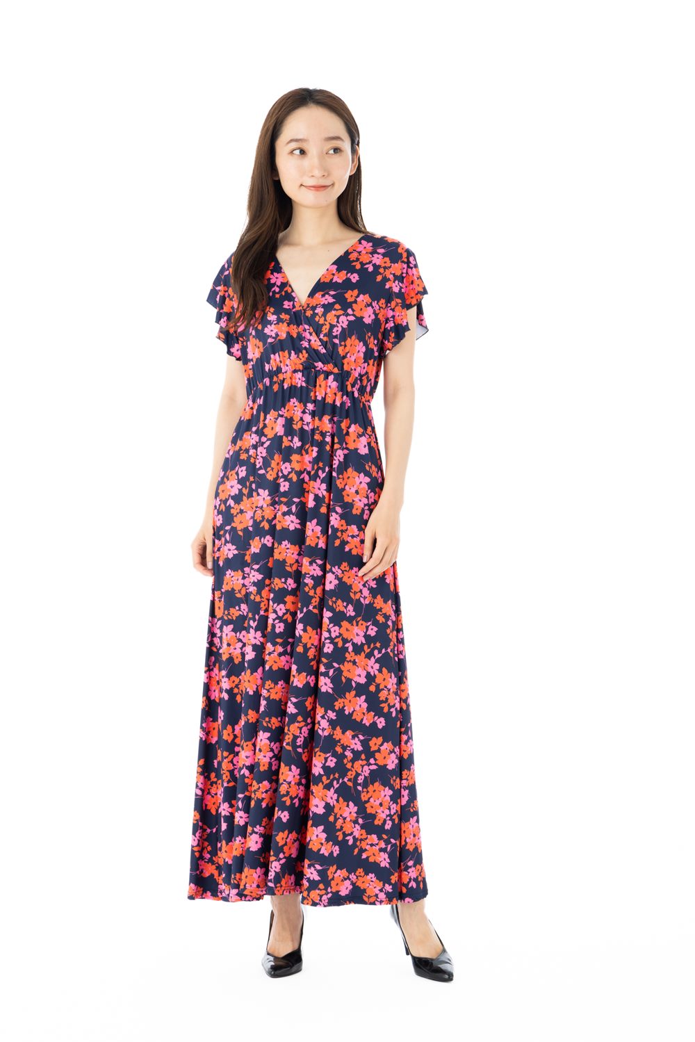 フィフィーユ FIFILLESワンピース T1 T2 T3サイズ 半袖 ロング丈 カシュクール 花柄 ジャージー生地 レディース 大人 フランス製 インポートワンピース オフィス 上品 エレガント きれいめ