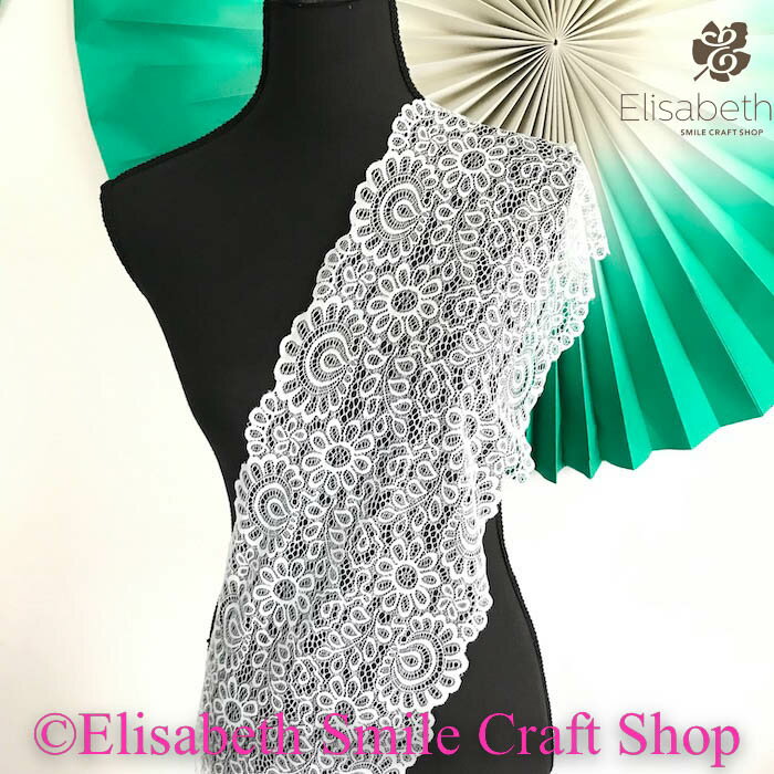 幅広 花模様のストレッチレースになります。 ステージ衣装、ダンスのコスチューム、服飾、 ドレス、ベリーダンス、レオタード、バレエ衣装、 バトンモチーフ、ハンドメイドなどにおすすめです。 サイズ:W22cm カラー:ホワイト 長さ:1ヤード(約90cm)