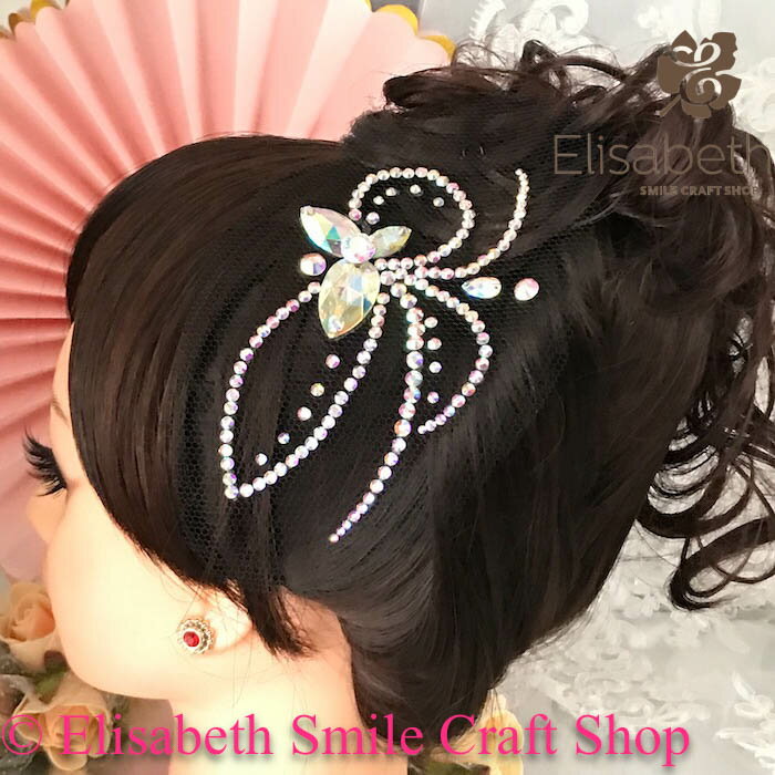 ラインストーン付きのヘアアクセサリーになります。 綺麗なストーンをアクセントとして散りばめ、 様々な色の輝きが放っていますので、 ドレスや衣装などに合わせやすいデザインになっています。 豪華でよく光りますので付けるだけで髪上げが栄えます。 競技会、パーティー、イベント、社交ダンスの衣装にも合います。 取り付けはヘアスタイルをセットした後、 アメピンやUピンで固定してお使いください。 サイズ:H13cm W7cm(装飾部分のサイズ) カラー:ABオーロラストーン チュール部分は、 ご自身のヘアスタイルやお好みに合わせて カットをしてお使いいただいても大丈夫です。 ※当店オリジナルデザインのハンドメイドです。