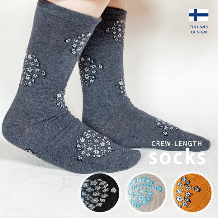 北欧柄 ソックス STUDIO HILLA FINLAND スタジオヒッラ フィンランド Kukkapallo クッカパロ クルー丈 くつした 全4色【ラッピングセット/お渡し袋付き※ラッピング付きのみ】