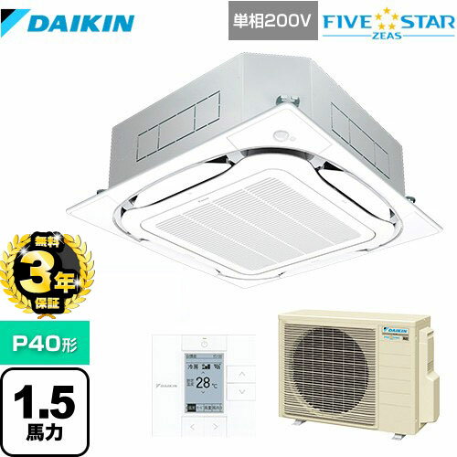 【無料3年保証】[SSRC40CV-F] FIVE STAR ZEAS ダイキン 業務用エアコン 天井埋込カセット形S-ラウンドフロー<センシング>タイプ P40形 1.5馬力相当 フレッシュホワイト 【送料無料】【直送 代引・土日祝配送 不可】
