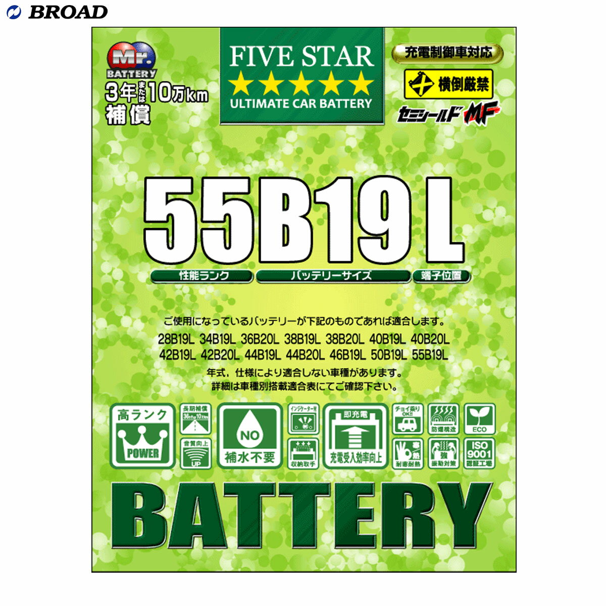 ブロード/BROAD FIVESTAR 国産車用高性能バッテリー 充電制御車対応 セミシールド カーバッテリー 55B19L