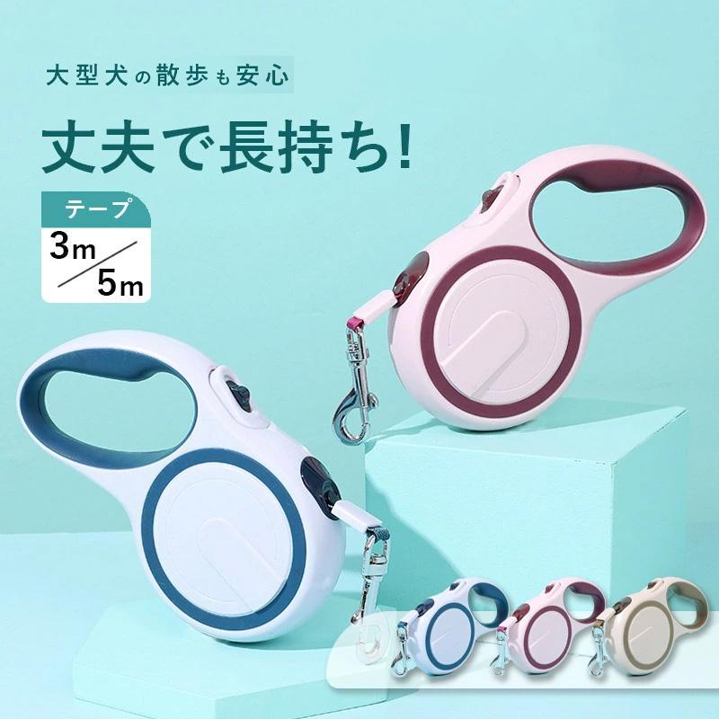 3m / 5m フレキシリード 小型犬用 中型犬用 大型犬用 テープ/コード 耐久性 頑丈 安全 伸縮リード フレキシ ペット用品 犬用品