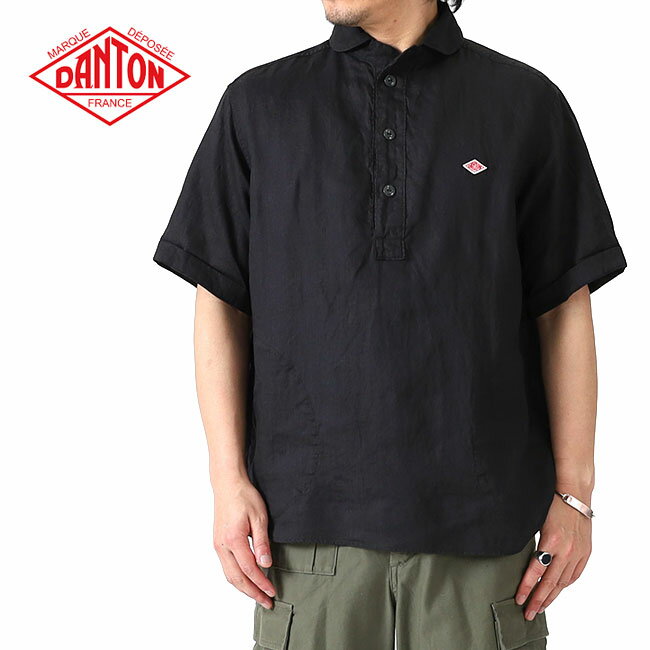 DANTON ダントン メンズ 無地 ソリッド リネン 丸襟 ラウンドカラー ポケット付き プルオーバーシャツ 半袖 ROUND COLLAR P.O SHIRT S/S DT-B0284 FLI 日本正規代理店商品