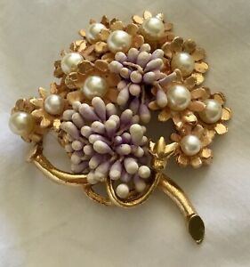 【送料無料】ジュエリー・アクセサリー ヴィンテージゴールドトーンパールブーケブローチvintage signed florenza goldtone pearl moveable seeds flower bouquet brooch 60’s