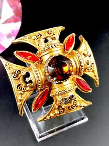 【送料無料】模型車 モデルカー フロレンツァゴールドトーンオレンジトパズカコションラインストーンマルタクロスブローチペンダントflorenza gold tone orange topaz cabochon rhinestone maltese cross brooch pe