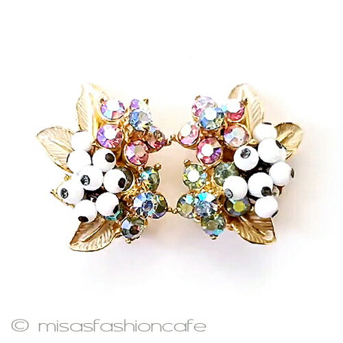 Florenza フロレンザ ヴィンテージヤリング ミルクガラス ラインストーンの花 ヴィンテージジュエリー アンティーク アクセサリー Vintage・ コスチュームジュエリー 蚤の市 プレゼント ギフト【海外直輸入USED品】