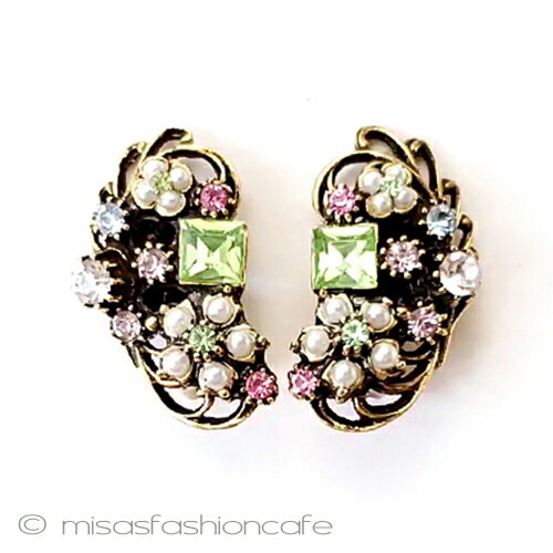 Florenza フロレンザ ヴィンテージヤリング パステル 花 パール ヴィンテージジュエリー アンティーク アクセサリー Vintage・ コスチュームジュエリー 蚤の市 プレゼント ギフト【海外直輸入USED品】