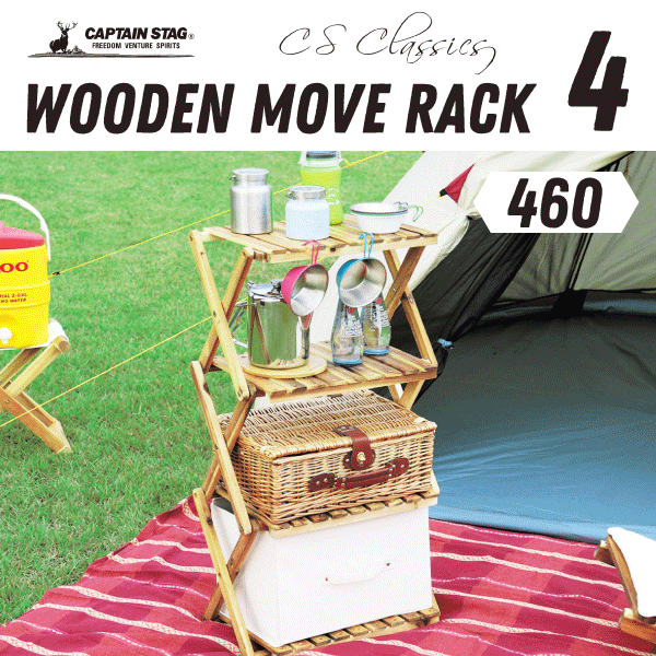 送料無料 【新しくなりました】 キャンプで大活躍! おしゃれ収納 CSクラシックス フォールディング ウッドラック ムーブラック 棚間高さ2段階調節機能付き 折りたたみ式 木製ラック 4段タイプ CAPTAIN STAG おしゃピク パール金属 【U-2583】【CP】