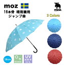 moz レディース 晴雨兼用傘 16本骨 長傘 MOZ フォレスト柄 モズ 北欧 エルク スウェーデン ジャンプ傘 ワンタッチ式 晴雨兼用 日傘 58cm UVカット 90%以上 ネイビー オレンジ ブルー 可愛い 誕生日 プレゼント ギフト