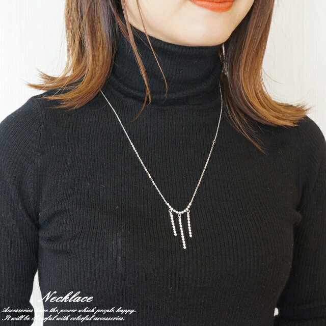 レディースネックレス チェーンネックレス ループタイ 3連 フリンジ ガラスストーン キラキラ きらきら シルバー ロジウム アズキチェーン あずき 小豆 ロングネックレス mens formal