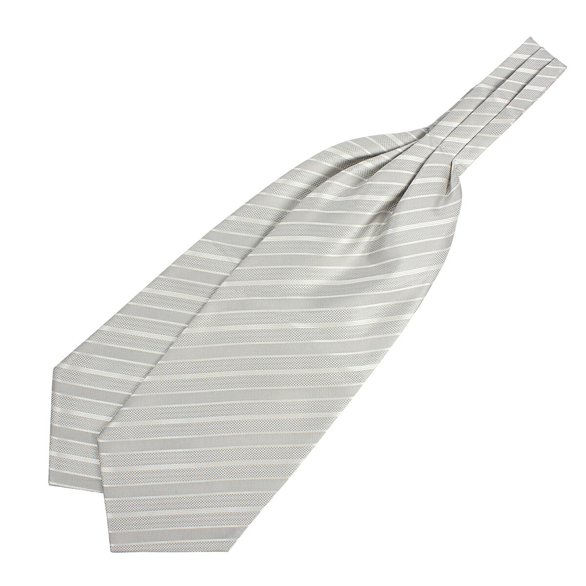 シルク アスコットタイ ストライプ ホワイトグレー 日本製 EXCY FORMAL メンズ/モーニング アスコットタイ