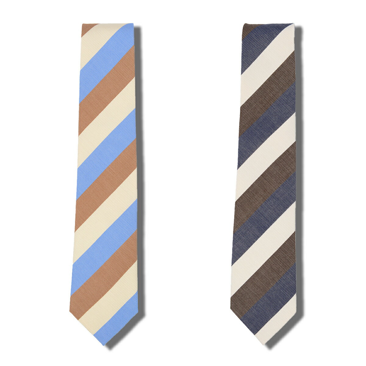 VANNERS シルクネクタイ レジメンタル ハンドメイド 日本製 EXCY FORMAL/ネイビーブラウン/スカイブルーキャメル