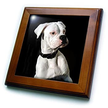 【中古】【輸入品・未使用】犬ボクサー???耳ホワイトボクサーUncropped???フレーム付きタイル 8x8 Framed Tile ft_1113_1