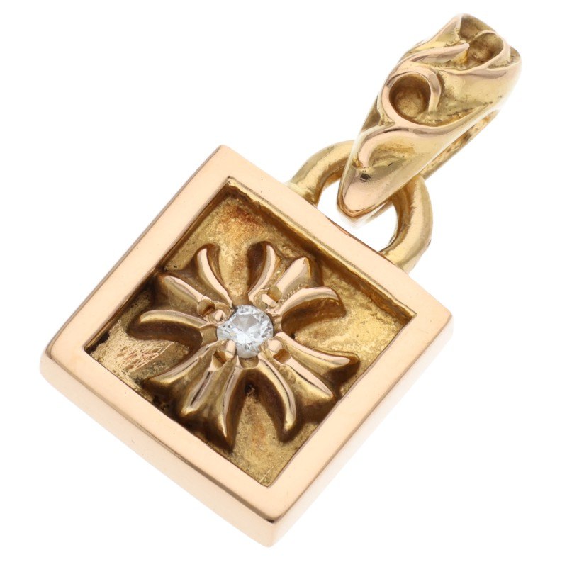 クロムハーツ Chrome Hearts 22K FRAMED CH PLUS 1DIA フレームドCHプラス 1ダイヤ チャーム ゴールドネックレストップ(イエローゴールド×クリア 8.11g)【909052】【OK15】【小物】【中古】bb315#rinkan*B