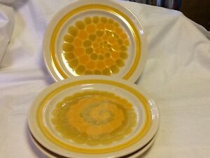 【送料無料】キッチン用品・食器・調理器具・陶器 フランシスコ会ヴィンテージピクニックディナープレートグリーンイエロー優秀年代アメリカFRANCISCAN Vintage PICNIC 4 Pc DINNER PLATES Green-Yellow EXCELLENT 1970's USA