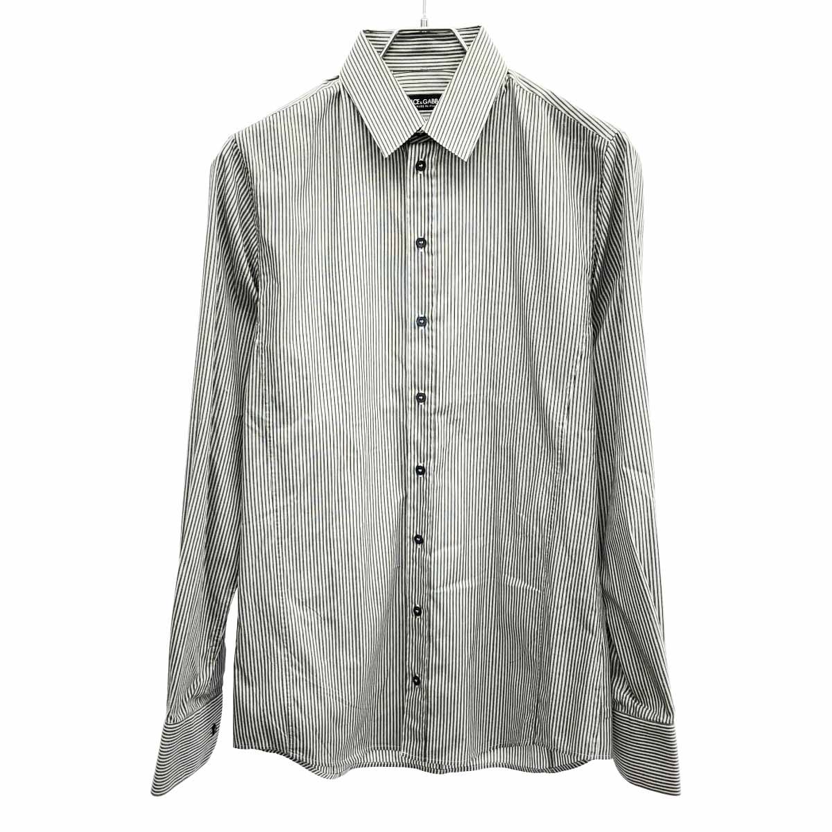 DOLCE&GABBANA ドルチェ&ガッバーナ SIGILIA コットンストライプドレスシャツ G5GP6T FREDI グレー系 15 38 【中古】 ITSTP9TKV47C