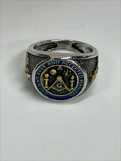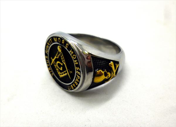 〇【 フリーメイソン Freemasons 】『 ビッグサイズ リング 25号(SV・ゴールドロゴ)』指輪 ドクロ アクセサリー おしゃれ かわいい スピルバーグ アメリカ雑貨