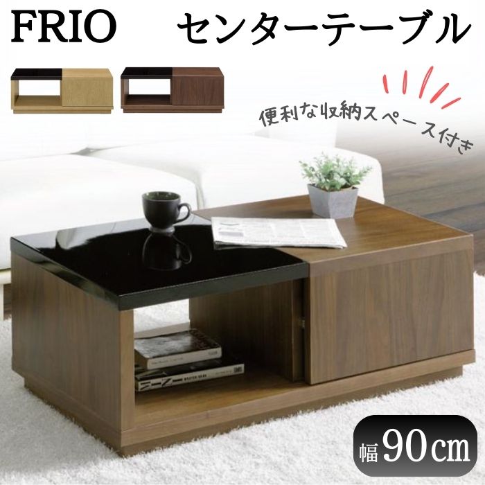 センターテーブル フリオ ローテーブル 机 テーブル デスク 天然木 木製 幅90cm リビングテーブル テレワーク完成品 収納付き 省スペース コンパクト 小さめ FRIO サンキ