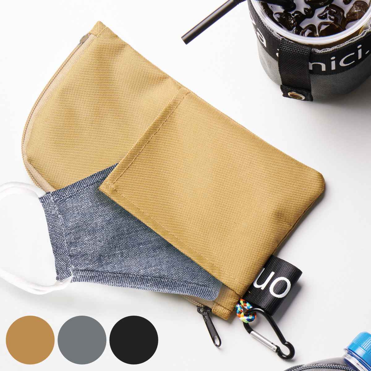 マスクケース cocoro FRIO ポルテ 抗菌 ( マスク入れ マスク 収納 布製 抗菌加工素材 18時間以上持続 ポケット付き カラビナ付き スリム 持ち運び 携帯 小物入れ コンパクト )