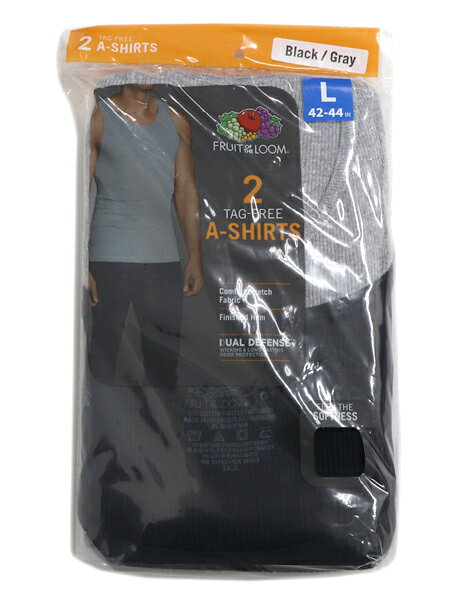 FRUIT OF THE LOOM 2P A-SHIRTS FINISHED HEM BLK/GRY【FOL1X-2P2601R-MIX】