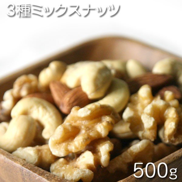 [ドライフルーツ / ミックスナッツ 500g] 3種ミックスナッツ 500g(アーモンド、くるみ、カシューナッツ)おやつ お菓子レシピ用 デザート用 スウィーツ用 酒の肴 おつまみ 保管用チャック付き [Mix Nuts / Dry fruit]