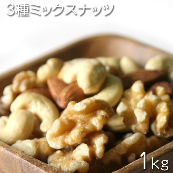 [ドライフルーツ / ミックスナッツ 1kg] 3種ミックスナッツ 1000g (アーモンド、くるみ、カシューナッツ)おやつ お菓子作り、レシピ用 デザート用 スウィーツ用 酒の肴おつまみ 保管用チャック付き [Mix Nuts / Dry fruit]