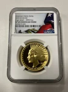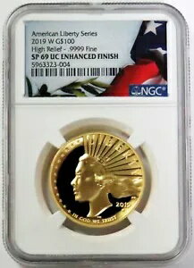2019 Wゴールド 100ドル ハイレリーフ ウルトラカメオ リバティ 1オンス コイン NGC SP 69 UC エンハンス