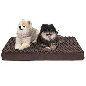 Furhaven 犬と猫用低反発ペットベッド - クラシッククッション超豪華なカーリーファー犬用ベッドマット、取り外し可能な洗えるカバー付き、チョコレート、M Furhaven Memory Foam Pet Bed for Dogs and Cats - Classic Cushion Ultra Plush Curly Fur Do