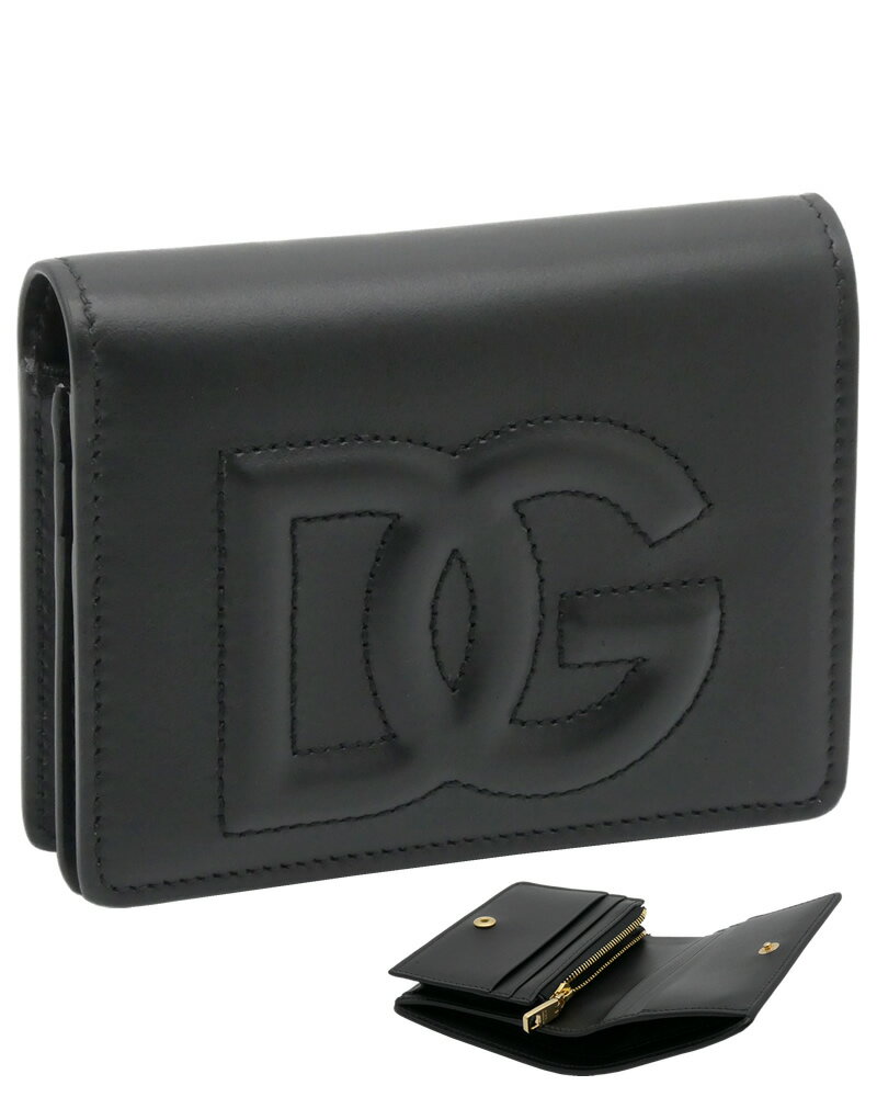 【2025年春夏新作】ドルチェ&ガッバーナ DOLCE&GABBANA DGロゴ ウォレット カーフスキン BI1211AG08180999 ドルガバ 二つ折り コンパクトウォレット 小銭入れ付財布 ブラック レディース 【新品 新作 未使用 正規品】
