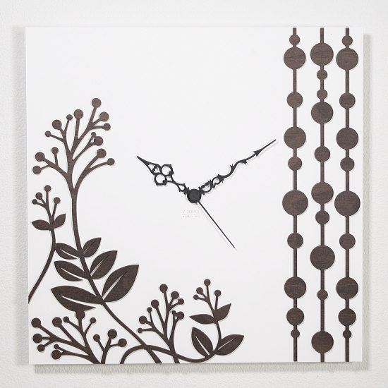 製品データ サイズ : 高さ35×幅35×奥行2.5(cm) 重量 : 約1.0Kg 材質 : 木材(厚さ8mm) メーカー : SD LASER S.r.L / i DETTAGLI 生産地 : イタリア ベルガモ 【パッケージについて】贈り物にもお使いいただける、メーカー製クラフトボックスに収納されています。 ご購入前にご確認ください オリジナルクラフトボックスに収納されていますが、イタリアからの輸送において出来た、潰れ・凹みなどが見られる場合がございます。 壁に設置する際の金具は付属しておりませんので、設置する壁の材質に合った金具をご用意ください。イタリア製アートパネル掛け時計「GABRIELLE/ガブリエル」 35x35cmシンプルで上品なモダンデザインのインテリアアートパネルと時計が一つになりました。 真っ白なパネルに植物が映える、おしゃれなデザインに溶け込んだ時計の針もデザインの一部です。 ホワイト塗装を施した正方形の木製パネルに、レーザーカットで切り出した木製の植物柄が、浮き出るように張り付けられています。 木目の柄が優しい雰囲気をかもし出している、ナチュラルテイストあふれるアートパネルクロックです。 一般の掛け時計よりも低い目線の位置(アートパネルや絵画を設置する程度の高さ)に設置していただくと、上品にアート性豊かな空間を演出してくれます。*製造時期により、色の濃淡が見られる場合がございます。ご了承下さい。 本製品はイタリア製ですが、ムーブメント(機械部分)はドイツ製。単三乾電池を1本使用します。ムーブメント1年保証。 サイズ:高さ35×幅35×奥行2.5(cm)・1.0Kg 木目が浮かび上がる木製の柄が、温かく優しい雰囲気のナチュラルモダンデザイン。 リゾート感あふれるアートパネルクロックです。 【i DETTAGLI / イ・デッタリー】 i DETTAGLIは、SD LASER S.r.L(SDレーザー社)のインテリアアクセサリーブランド。 ミラノにほど近いイタリア北部ベルガモに所在し、木や金属、ガラスなど様々な素材をレーザーでカットや彫刻、マーキングなどの加工を行う企業です。 その技術を用いて創りだされる複雑で繊細な切抜きや模様の芸術的なイタリアデザインは、日々の暮らしを明るく楽しくしてくれる、アートとテクノロジーの融合。 アートパネルや掛け時計などの独創的でアートな作品は、空間の雰囲気を変えてくれるおしゃれな存在です。 シンプルでありながらも、センスの良さが感じられるイタリアならではのデザインアイテムは、新築祝いや開店祝いなどの贈り物にもおすすめです。