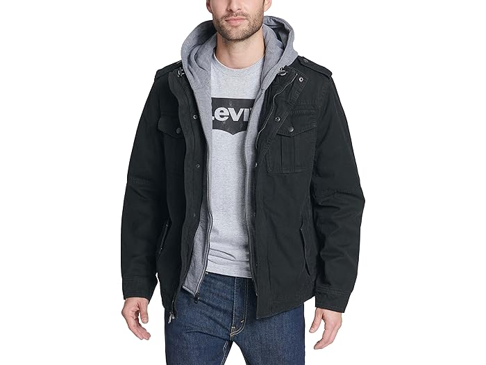 (取寄) リーバイス メンズ ツー-ポケット ブーディ ウィズ ジップ アウト ジャージ ビブ/フード アンド シェルパ ライニング Levi's men Two-Pocket Hoodie with Zip Out Jersey Bib/Hood and Sherpa Lining Black 1