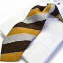 サイズ 縦143〜146センチ×幅8センチ 材 質 シルク(100%) 色 ブラウンシルバーゴールドのストライプ 商品説明 写真と多少の色の異なりはご了承下さい。お勧めの新柄ネクタイ! ジャケットや、スーツに合わせて頂くことが出来ます。