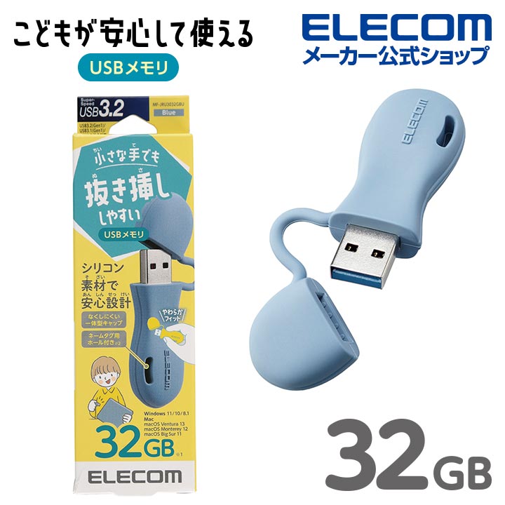 エレコム ELECOM 子ども向けUSB3.2(Gen1)メモリ 32GB (ブルー)(MF-JRU3032GBU) メーカー在庫品
