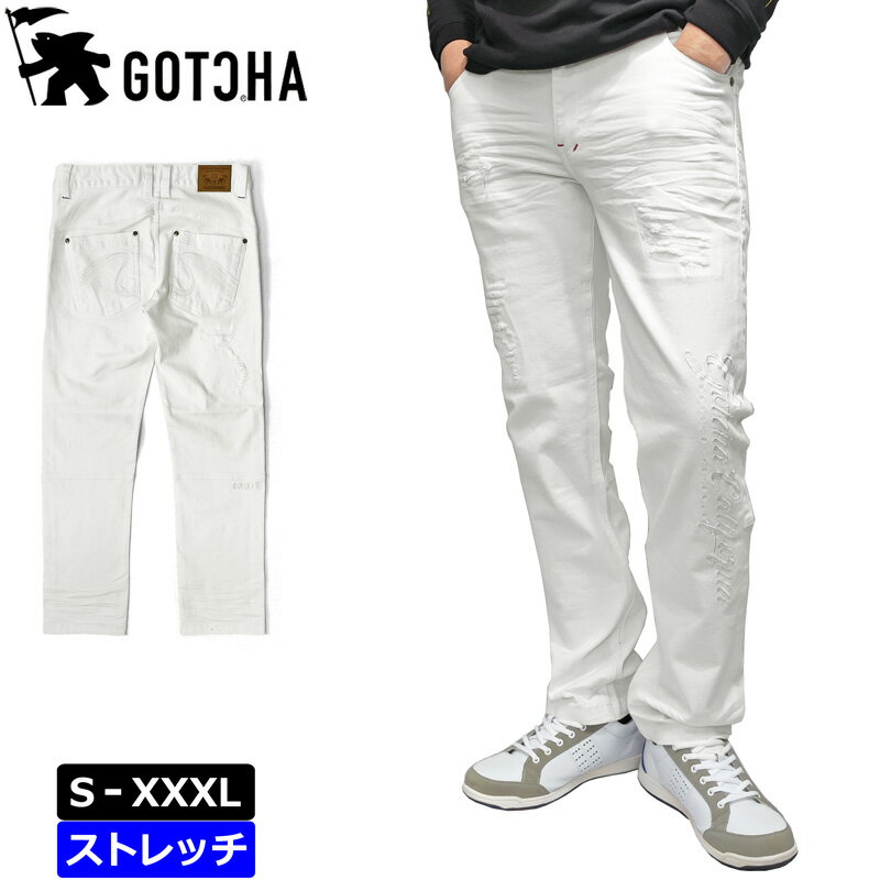 ガッチャ メンズ ストレッチ ホワイト デニムパンツ ダメージ加工 241G1806 【新品】TAAR ジーンズ デニム ロング パンツ ボトムス ファッション カジュアル APR3