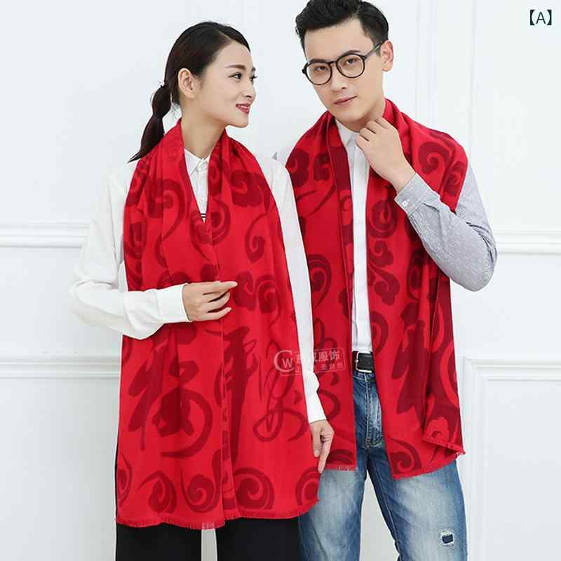 マフラー メンズ レディース 秋冬 福の文字柄 中国風 レッド 平安福柄 ロング丈 保温 防寒 ナイロン ストール ショール ギフト プレゼント 普段使い