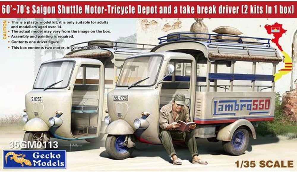 ゲッコーモデル 1/35 サイゴン ランブロ550 シャトル 三輪自動車・休憩中の運転手 1960-70年代 2両セット フィギュア 1体入 プラモデル GEC35GM0113