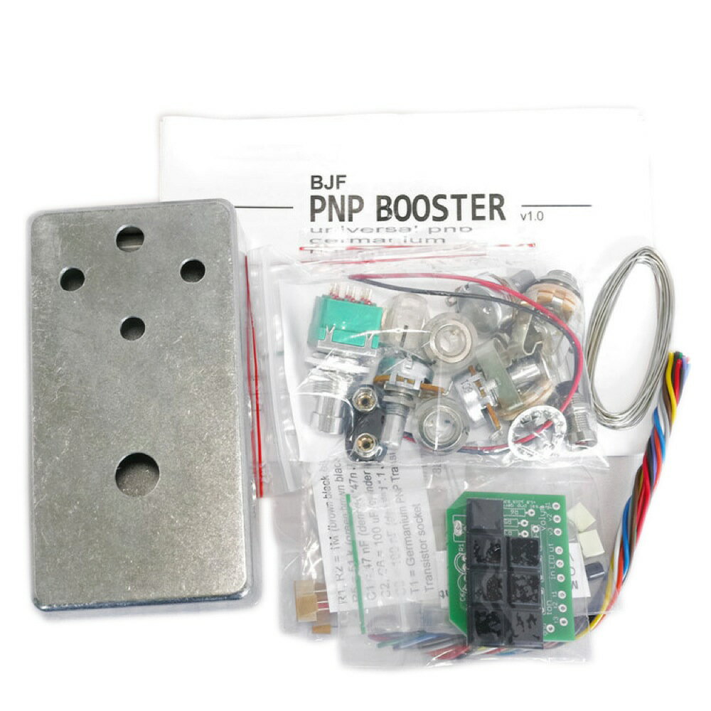 Moody Sounds BJFE PNP Germanium Booster Kit 自作 エフェクターキット※パーツの取り扱いには、相応の技術と知識が必要になります。自己責任にて、取り扱い可能な方のみ、ご検討下さい。取り付け作業後の商品につきましては、いかなる理由でも返品は受付出来ません。”正しい”ヴィンテージサウンドについての議論は尽きることがありません。果たしてそこに正解があるのかはともかく、Moody Sounds BJFE PNP Germanium Booster Kitは、70年代のサウンドに欠かせないブースターを作るためのキットです。70年代のサウンドを作るために、当時多く使用されたブースターを作ろうとすると、ある問題が起こります。現代のエフェクターの多くはNPNトランジスタに合わせて設計されています。しかしmOC45、OC75、AC126などの有名なゲルマニウムトランジスタはPNPです。現代のブースターの回路にそのまま設置することはできません。では、古いPNPトランジスタのために設計されたブースターの回路を見ると、ポジティブグランドで、アダプターで駆動させる際に極性が違ったり、デイジーチェーンができないなどの問題が起こります。BJFE PNP Germanium Boosterは、この問題を全て解決します。一般的なアダプターを使用できるセンターマイナス端子であり、グランドもネガティブとなっているためデイジーチェーンも問題ありません。そして、PNPトランジスタのために設計されています。PNPゲルマニウムトランジスタだけでなく、PNPシリコントランジスタにもご使用いただけます。古いトランジスタは個体差がかなりある場合もあります。基板のトリムポットでバイアスを調整し、設置したトランジスタの最大のポテンシャルを発揮することができます。ペダルにはTone、Volume、Saturationコントロールがあります。キットに付属するトランジスタはOC75、またはその同等品です(お選びいただけません)。