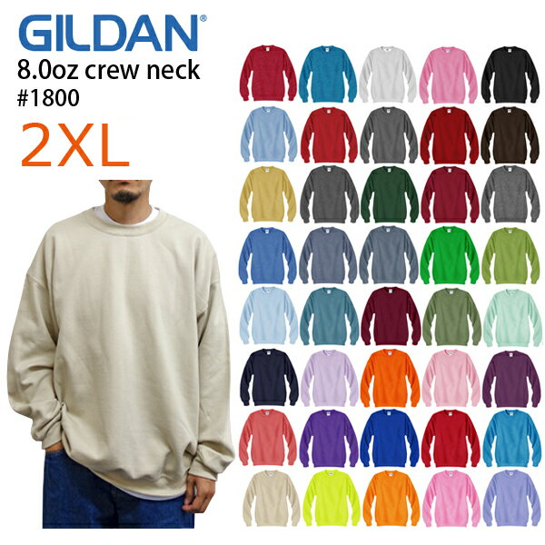 2XL GILDAN(ギルダン)8.0oz 裏起毛トレーナー 50/50 セットインスリーブ クルーネック 大きい 大きめ ビッグサイズ メンズ 無地 スウェット メンズ 男女兼用 裏フリース カラフル 蛍光色 保温 秋冬 カジュアル アメカジ シンプル XXL (GILD-F1800 GL18000) 1114