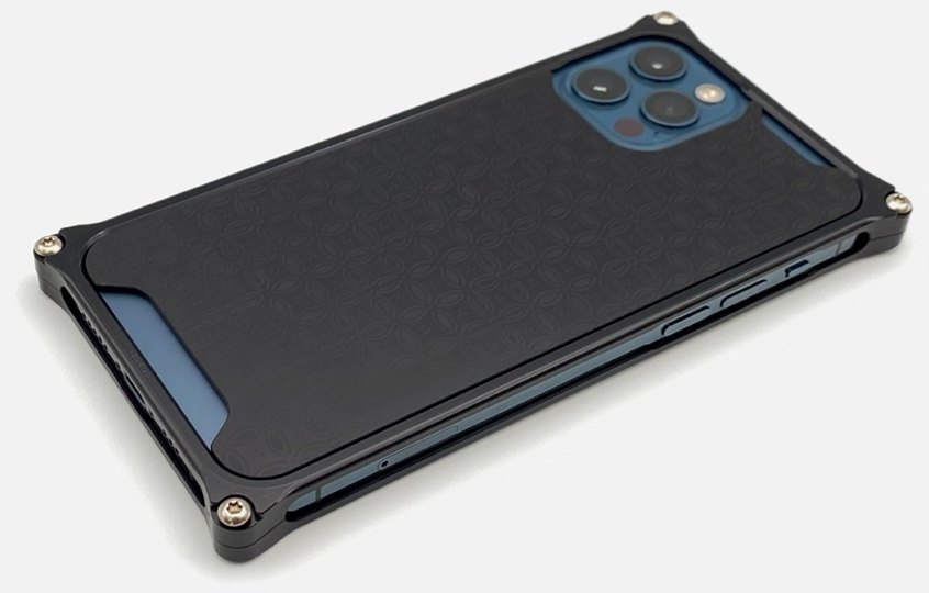 ■注意■この商品は下記となります。必ずご確認ください。カラー:七宝ブラック(型番:GOK-428SB)■他の商品はこちらですカラー:アラベスクレッド(型番:GOK-428AR)はこちらカラー:アラベスクブラック(型番:GOK-428AB)はこちら※リンク先に商品がない場合、すでに完売している商品となります。予めご了承ください。■商品概要【材質】・ボディ:A2017S・ボルト:ステンレス【サイズ】・幅:77mm・高さ:157mm・奥行:10.5mm【重量】・本体:18g・パネル:30g【生産国】日本■詳細説明ギルドデザインは伊勢型紙の老舗メーカー「(株)オコシ型紙商店」とコラボレーションし、iPhone12/12Pro対応のソリッドバンパーを製作致しました。三重県鈴鹿市にある「オコシ型紙商店」と三重県亀山市にある「ギルドデザイン」、地元企業のコラボレーションが実現。この特別なモデルは、「スマートフォンを本気で守る」をコンセプトに、航空機や自動車部品に使用される高強度ジュラルミン削り出しの無垢材から削り出したアルミ製ケースに、専用のレーザーマーカーによって表面を微細に彫刻することでイメージを浮き立たせています。レーザー刻印は半永久的に消えてはいけない機械類のシリアルナンバー刻印などに使用されるマーキング手法です。使用している材料は、「古河スカイ製」(現在は株式会社UACJ)のA2017材ジュラルミンを使用。強度があり、切削性に富んだ材質です。この高剛性ジュラルミンの無垢材を強度を保ったまま95%を削りアルミケースへと仕上げます。さらに素材、表面処理、ケースを固定するボルト、付属するシリコン、レンチ、パッケージの箱に至るまでこのギルドデザインのアルミケースに関するすべての物は日本で作られたモノとなっています。徹底した「メイドインジャパン」へのこだわりこそが、お客様に安心して使用して頂ける高品質なケースの自信へとつながります。信頼の日本製を使用するからこそ得られる「高品質」をぜひ体感してください。【アラベスク Arabesque】唐草文様は古代ギリシャに起源をもつモチーフですが、この世にはない美しい花々を蔓で結んだ意匠デザインは「人と人との堅い絆の美しさ・結ぶ事の尊さ」を表現しています。【七宝 Shippou】仏教の経典に記される「七つの宝物」または、数百年の寿命をもつ「シャコ貝」に由来します。奈良時代より伝わる円を重ねて繋ぎ合わせた文様は、絶えることのない「連鎖と拡大」を意味し、ご縁を繋いでゆくという「円満・調和・繁栄」を願う吉祥文様です。■注意点※本製品は商品の特性上アルミ製のため、電波が本体裏側を遮ることになります。わずかながら電波を受信する性能が劣る可能性があります。※本製品は、iPhoneを完全に衝撃などから保護する目的では作られていません。iPhone本体への破損、故障、紛失、データの消失等につきましてギルドデザインは一切責任を負いかねますので予めご了承ください。※本製品は、衝撃吸収用樹脂によってiPhoneとケースが接しないように設計しておりますが、iPhoneを完全にキズから防ぐ目的では作られていません。※本製品装着によるiPhone本体へのキズにつきましてギルドデザインは一切責任を負いかねますので予めご了承ください。※製品の仕様・外観・同梱品につきましては予告なく変更する場合があります。※社外充電器などは使用できない可能性があります。※市販フィルムは液晶面、背面共に厚み0.2mm以下のフィルムが装着可能です。しかし、0.2mm以下の厚みであっても取り付け方法や、フィルムの種類により気泡が入る、浮いてしまう等の不具合が起きる可能性がございます。0.2mm以下であれば必ずしも適切に装着ができるという保証をするものではございません。予めご了承ください。※もともと電波状況のよくない場所では、電波が受信し辛い場合があります。通常の電波を受信している場合は問題ありません。※アルマイト処理の特性上、毎ロット同じ色で仕上げることが難しくなります。なるべく同じ色味で仕上げるように努力はしておりますが、アルマイト処理上、ロットにより色にバラつきが出てしまいます。※本製品はアルマイト処理を施しているため、電流を通す接点と呼ばれる場所は色がつきません。ケース内側に2点色が付いていない箇所がありますが加工不良ではありません。※商品写真はできる限り実物の色に近づけるよう努力しておりますが、お客様がご使用になられるパソコンのモニターやカラー設定・室内の照明・日光などにより色の変化が感じられる場合がございます。■適合車種 備考: iPhone12/12pro